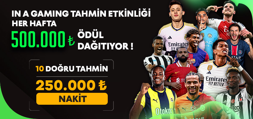 Gaming Tahmin, haftalık en az 1000 TL yatırım yapan oyuncularımızın belirlenen tüm tahminleri doğru bilerek büyük ödüle ulaştığı bir kampanyadır. Tahminlerinizi https://gamingtahmin2.com adresinden belirtilen süreler içinde yapabilirsiniz.